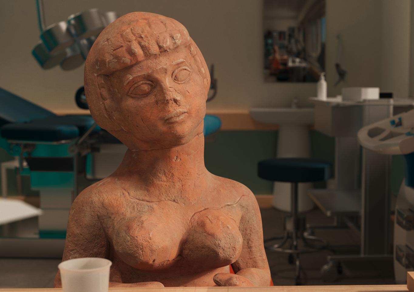 באמצעות טכנולוגיה מתקדמת היא מנפישה צלמיות פריון עתיקות שנמצאו באזורנו כאוואטריות שלה ושל הנשים החיות בסביבתה. ארץ אֵם מעלה שאלות על בחירה חופשית, שליטה בפריון ואימהוּת כעיסוק עכשווי ששורשיו קדומים.